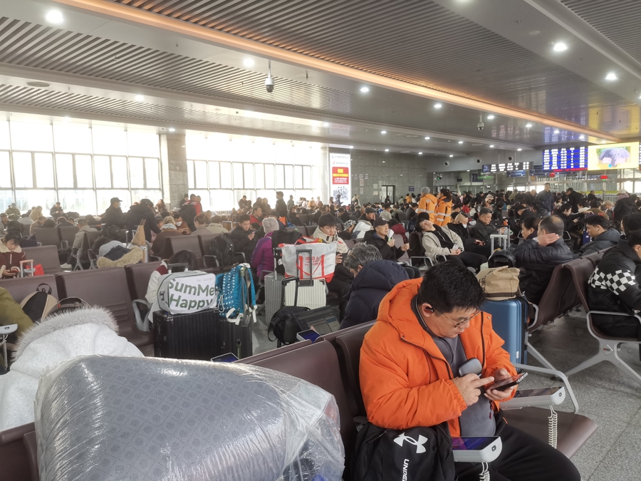 此时的候车室里已是东说念主头攒动,东说念主们或返乡团员,或出门旅行。52岁的孙师父在上海工地打工,今天就回蚌埠故乡了,天然买的是绿皮慢火车车票,到蚌埠要7个多小时,但孙师父说:“工友们去聚会售票大楼问问有莫得更早发车、更快到达的车票,有的话就改签,莫得也不进军,能回家过年即是甘心的。”他有两个犬子、一个女儿,平时在武汉、合肥打工,“一家东说念主也即是过年能聚皆,沿途吃吃饭、放放鞭炮,家东说念主团员即是年味。”