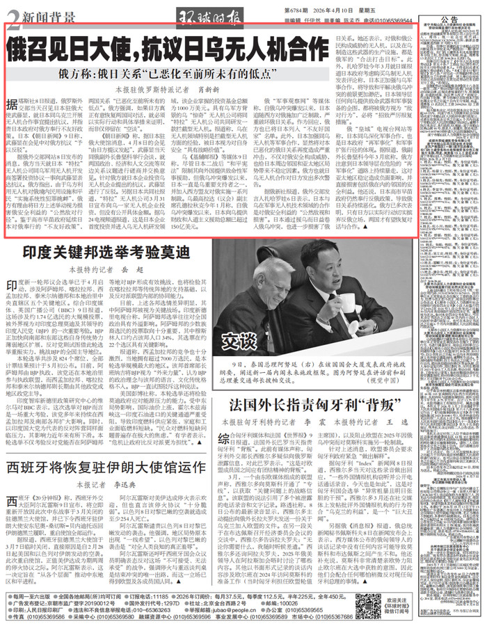俄“皇城”电视台网站等称,日本同乌深刻军事配合,亦然日本政府“再军事化”和军事扩展举止的体现。据报说念,俄副外长鲁坚科本年3月底称,俄方留意到日智商导层在危机的“再军事化”说念路上无间暴走,这对亚太地区雄厚形成负面影响,并胜仗损伤包括俄在内的邻国的安全利益。他还说,日本高市早苗政府仍然奉行反俄政策,导致俄日相干无间恶化。俄方已屡次标明,唯有日方以实质行动切实摒除反俄态度,两国才有望复原对话与配合。