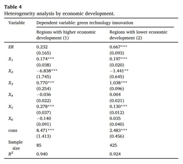按经济发展水瓜分组的环境规制对绿色时候革命影响的异质性分析终结如表4所示。在经济发达地区,环境规制的总共为0.232,未通过权臣性锤真金不怕火;而在经济欠发达地区,环境规制的总共为0.667,在1%水平上权臣为正。这标明环境规制在经济欠发达地区约略有用促进绿色革命,但在经济发达地区则无权臣影响。