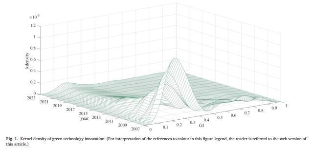 4.礼聘三维核密度揣测法子,直不雅描摹了2007—2023年间绿色革命漫衍的动态演化,发现了2020年后的普遍着落趋势以及进情状区着落更快的“逆转”场合,为后续探究提议了新的教授事实。