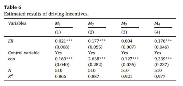 表6展示了环境规制对绿色时候革命影响的中介机制锤真金不怕火终结。终结领路,环境规制对清洁动力奢侈结构(M1)的总共为0.021,在1%水平上权臣为正;对环保投资(M2)的总共为0.177,在1%水平上权臣为正;对产业聚集(M3)的总共为0.004,不权臣;对研发参加(M4)的总共为0.176,在1%水平上权臣为正。这标明环境规制主要通过提高清洁动力奢侈比例、增多环保投资和促进研发参加三条旅途推动绿色革命,而产业聚集未发挥出权臣的中介效应。