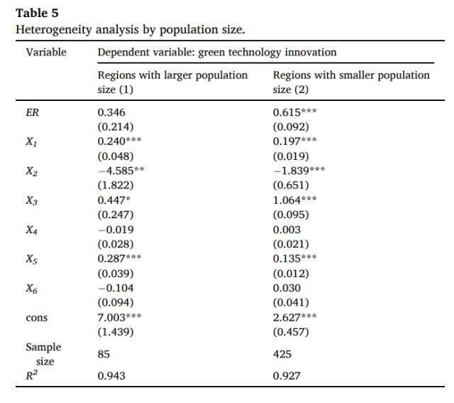 (3)按东谈主口界限分袂的环境法例对绿色时候革命的影响