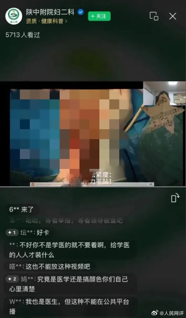 2月3日,陕西中医药大学附庸病院发布情况通报称,经病院党委商议决定,对妇二科崇拜东谈主给以严重告诫刑事连累并停职查验;对崇拜审核的医务部磋议连累东谈主给以告诫刑事连累;对关系院携带已报上司党委进一步处理。此前,该院妇二科在采集平台直播作念手术,画面中径直出现女性患者心事部位,激发质疑。