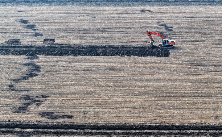 2025年3月11日,在天津市津南区八里台镇大韩庄村,工东说念主驾驶挖掘机进行高表率农田施使命业(无东说念主机像片)。新华社记者 赵子硕 摄