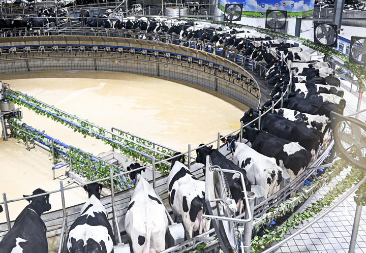 2025年7月28日拍摄的呼和浩特市伊利敕勒川生态贤人牧场挤奶车间。新华社记者 李志鹏 摄