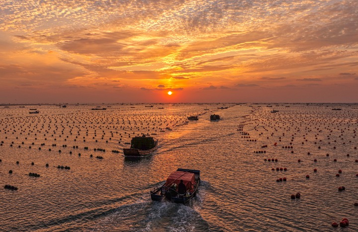 2025年10月24日,在山东省荣成市爱伦湾鲍鱼衍生区,得益鲍鱼的衍生户驾驶船只复返渔港(无东说念主机像片)。新华社发(李信君 摄)