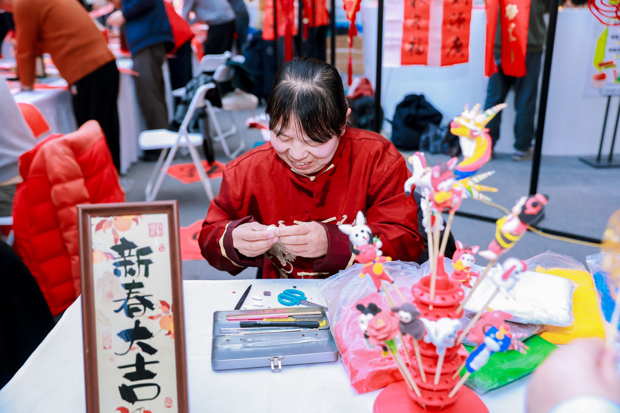 “非遗匠心区”收罗剪纸、中国结、面塑、糖画等传统技能,让员工感受传统文化魔力。“幸福纵贯车区”集会近20家“闵工惠”特约商户,提供优质优惠的年货商品,便捷员工置办年货。