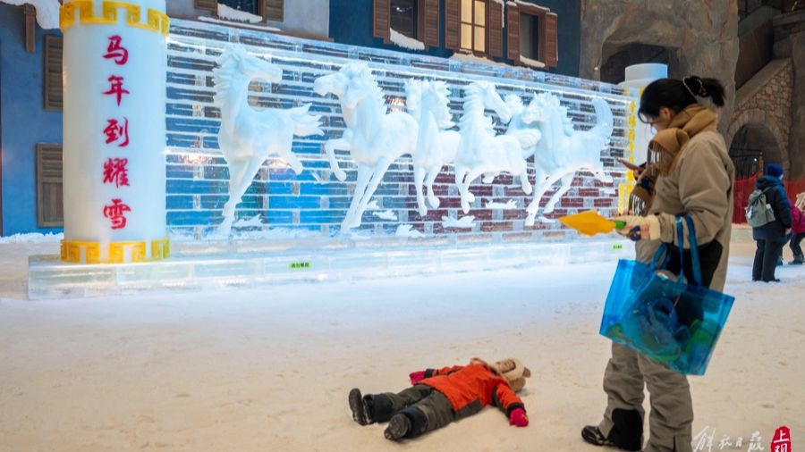 2026世界杯 新春新去向!耀雪冰雪世界百吨冰雕“八骏图”迎客,外籍演员跳起英歌舞