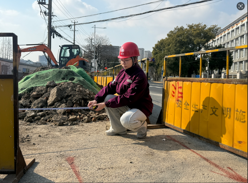 1月24日,嘉定公司项管中心现场照应员屠伊琳在西门涉燃现场监督施工安全