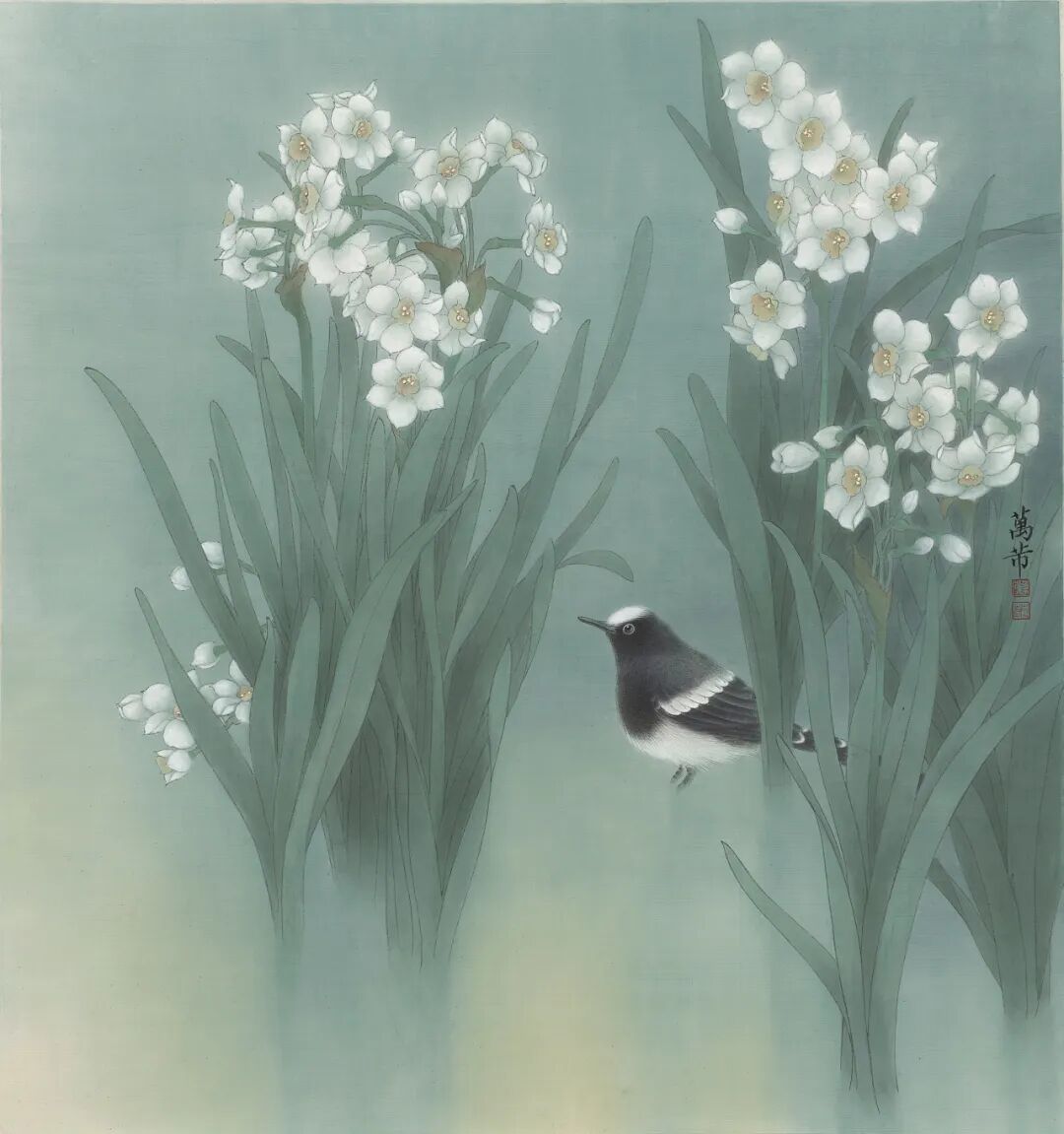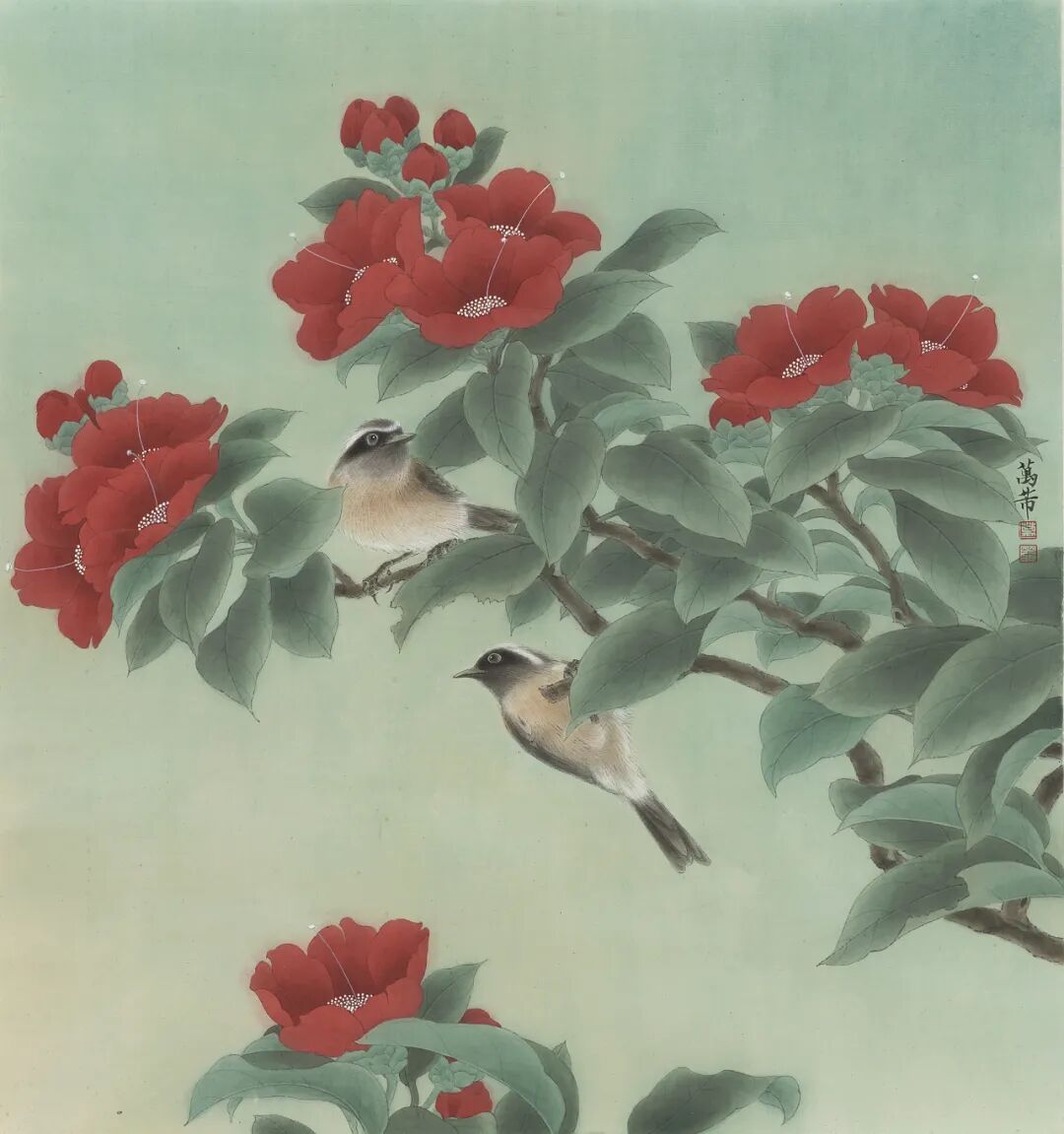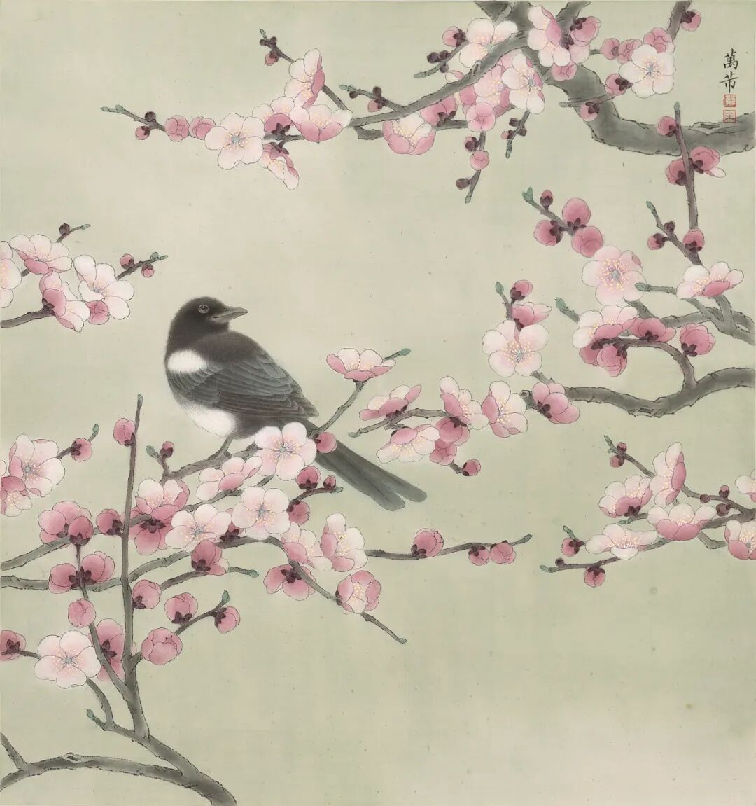 万芾是上海实力派花鸟画家,她笔下“花鸟世界”中的二十四气节,作品色调丰富,构图当代而不失传统韵味。