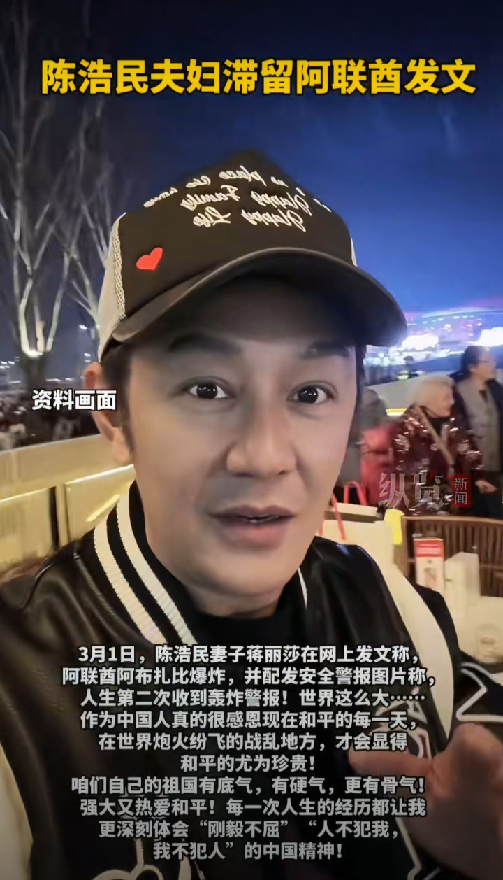 陈浩民佳偶近日从战火隐蔽的阿联酋恐忧颤抖,乘坐首航航班与导弹擦肩而过,最终吉祥降落香港,他们在凌晨直播中呜咽感触:"只好踏上故国地盘才敢说吉祥"。