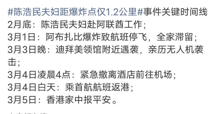 3月1日阿布扎比爆炸致航班停飞,陈浩民佳偶被动淹留。