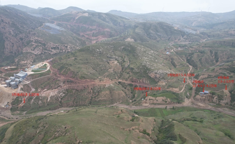 新庙庄旧石器时期古迹主要发掘区与年代序列(西→东)