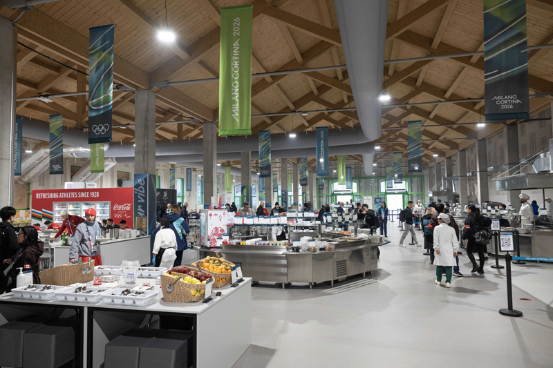 这是2月3日拍摄的意大利米兰奥运村餐厅。 新华社记者 张豪夫 摄
