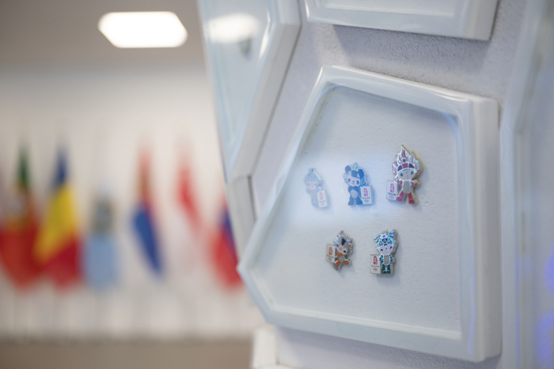 这是2月3日防御大利米兰奥运村拍摄的北京奥运会空闲物徽章。 新华社记者 张豪夫 摄