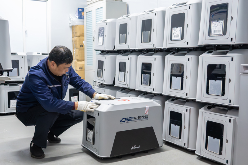 2月3日,在湖北武汉火车站,使命主谈主员将“高铁宠物输送智能箱”搬下列车。 新华社记者 杜子璇 摄