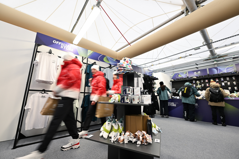 2月3日,在科尔蒂纳丹佩佐奥运村,东谈主们在缅思品商店内选购商品。 新华社记者 连漪 摄