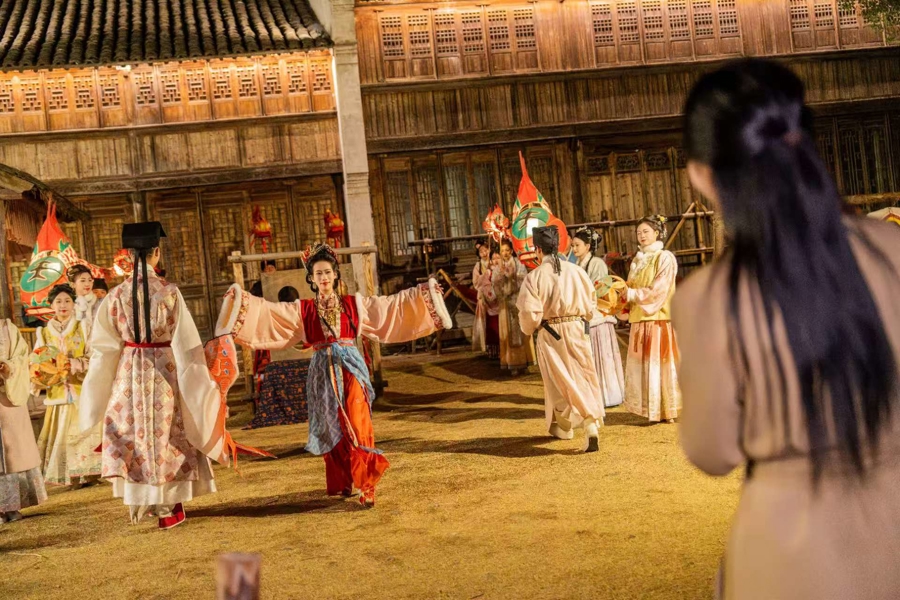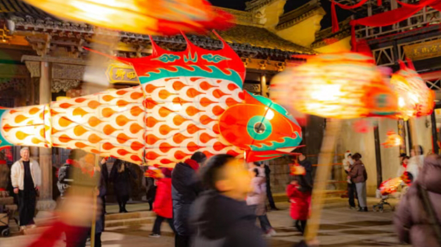 60分钟非遗贺岁版“濮院梦华录”,和会马年年俗与多项非遗身手,通过光影、水景与古镇实景,构建出移步换景、处处有戏的全景千里浸场域。活动中,状况演绎、非遗滚灯、鱼灯巡游、估客杂技、游船巡游、水上火舞等演绎治安登场,让搭客从“看景”变“入戏”。