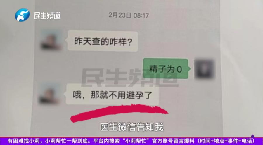 马先生暗示,他和浑家照旧育有3个孩子,何况王人是剖腹产,因为青睐浑家,是以在2025年1月23日赶赴郑州市第三东说念主民病院作念了男性结扎手术,何况撤职医嘱在术后一个月内不临幸。之后,马先生去该病院复查,搜检遵守表露精子密度为0,大夫微信申报他不错无谓接收避孕法子。