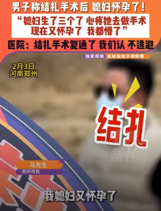 但是直到客岁12月份,马先生浑家又查出来怀胎了!马先生嗅觉很纷扰:结扎了咋可能怀胎?”