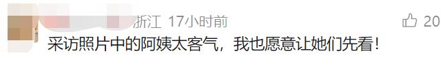 也有东谈主点赞采访中的大姨:太客气了,我粗野让她们先看!