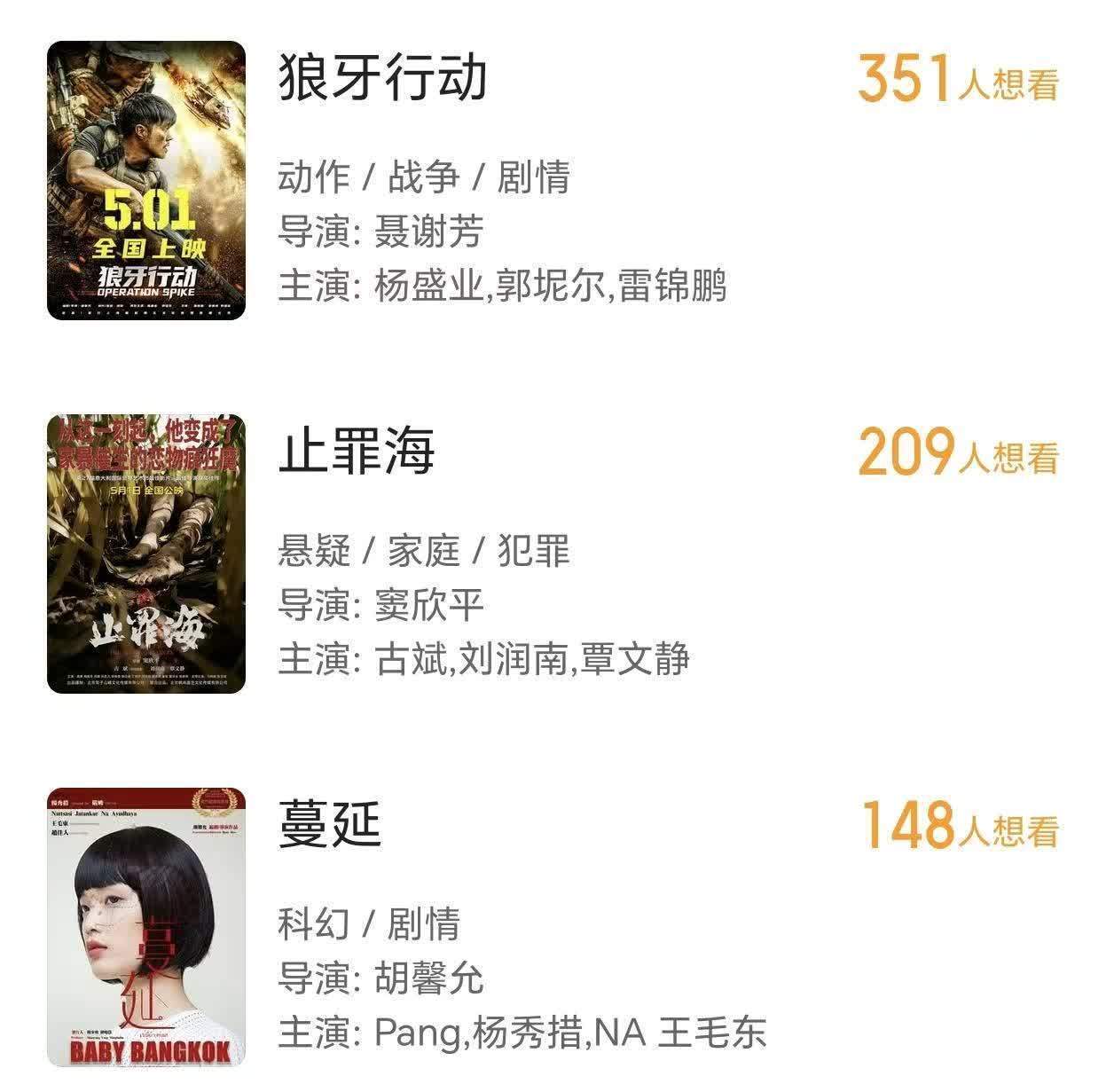 国内电影平台数据清楚,本年五一档已定档十七部新片。