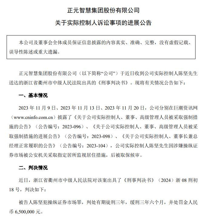 2026世界杯官网 V不雅财报|正元颖异实控东说念主陈坚犯独揽证券阛阓罪被判三年缓三年半
